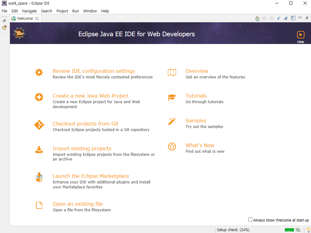 이쁘게 출력이 되었다. 자 이제 자바도 설치했고 이클립스도 설치를 끝마쳤다.