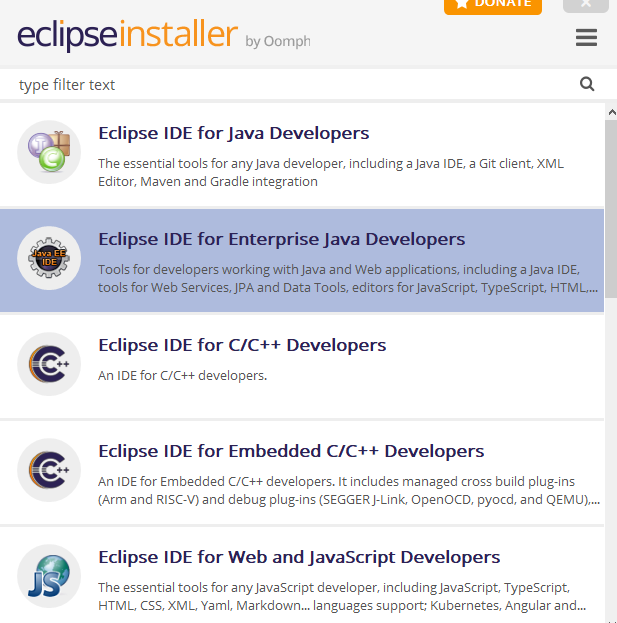 Eclipse IDE for Enterprise Java Developers 를 설치한다.