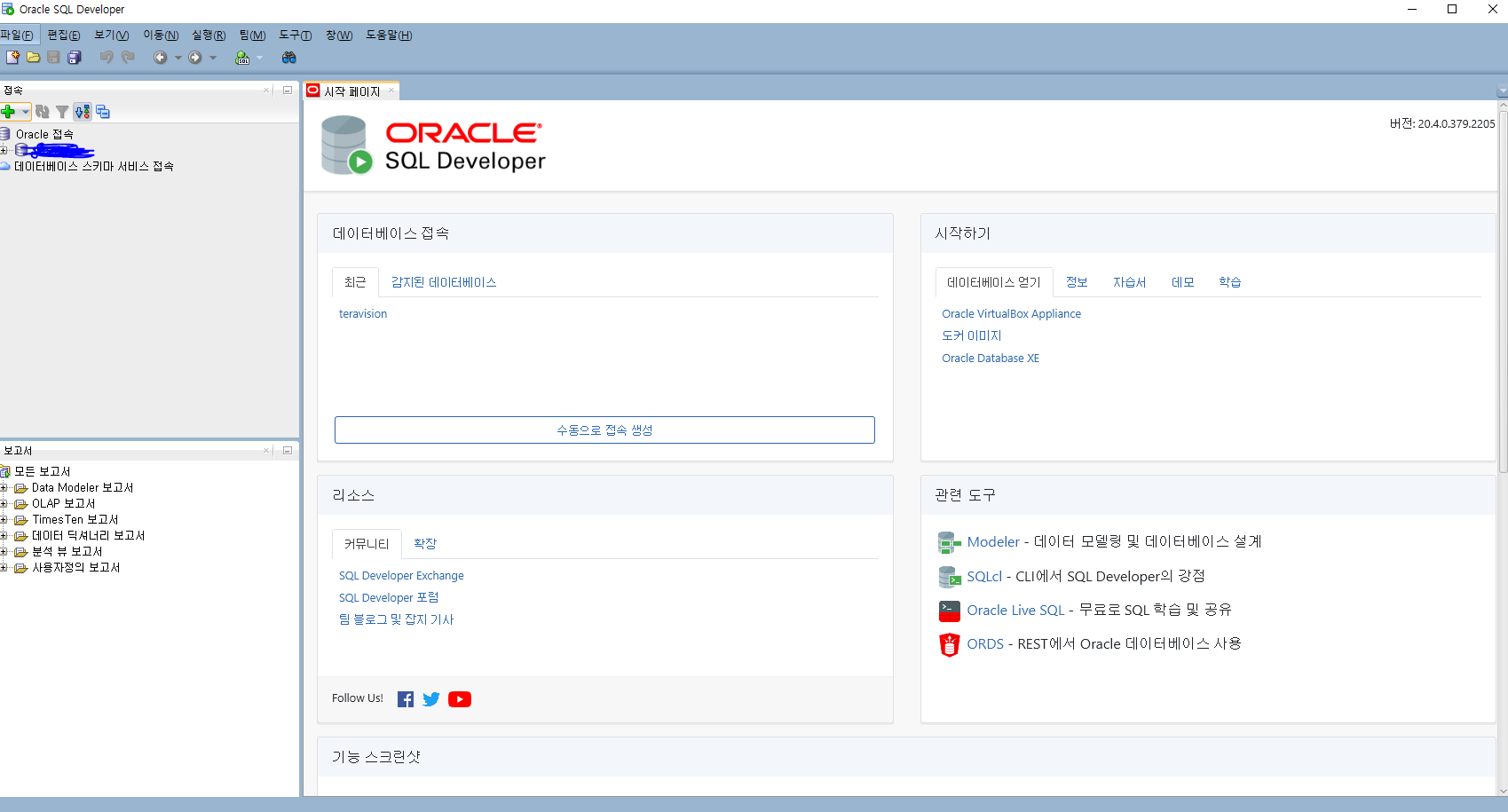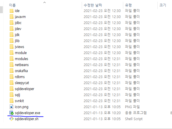 압축을 풀고 sqldeveloper.exe 를 실행한다.