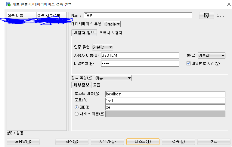 로컬에 오라클이 설치되어 있다면 호스트 이름을 localhost나 127.0.0.1나 자기 ip주소로 연결하면 된다.