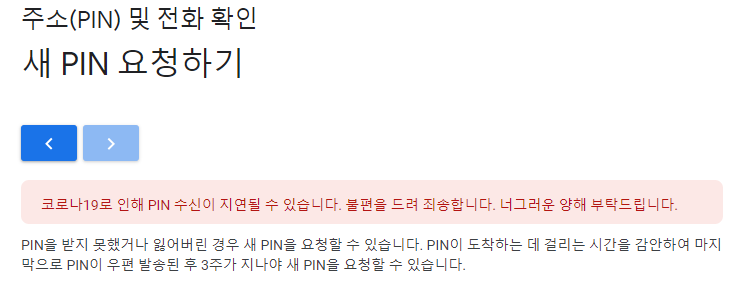 3주 후에 새 PIN을 요청할 수 있다고 한다.