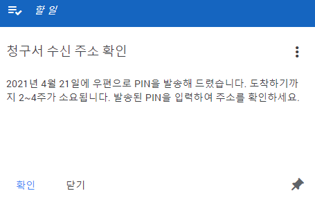 이럴 수가 난 새로운 거주지 주소를 변경을 안 했었다... ㅠㅠㅠㅠ