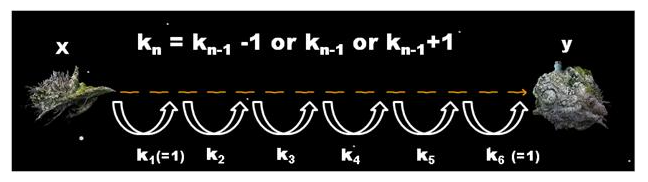 제약이 있는데 y지점으로 도착할 때 직전의 이동거리는 1로 해야 되는 것이다.