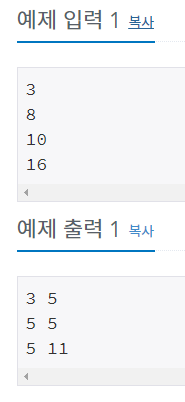 3. 테스트 케이스 T 입력 T 만큼 짝수 n입력