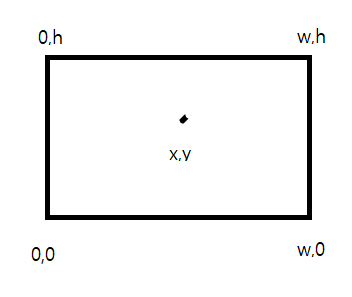 요렇게 생긴 사각형인데 x, y, w, h 를 입력하고 x, y 에서 직사각형의 변 중에 가장 가까운 경계선을 구하는 프로그램을 작성해야 한다.