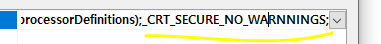 => 전처리기 정의의 우측에 입력란 끝부분에 _CRT_SECURE_NO_WARNINGS;를 입력한다.
