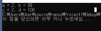 b의 값 100을 d에 넣고 b는 1 감소시킨다. d는 100이고 b는 99가 된다.