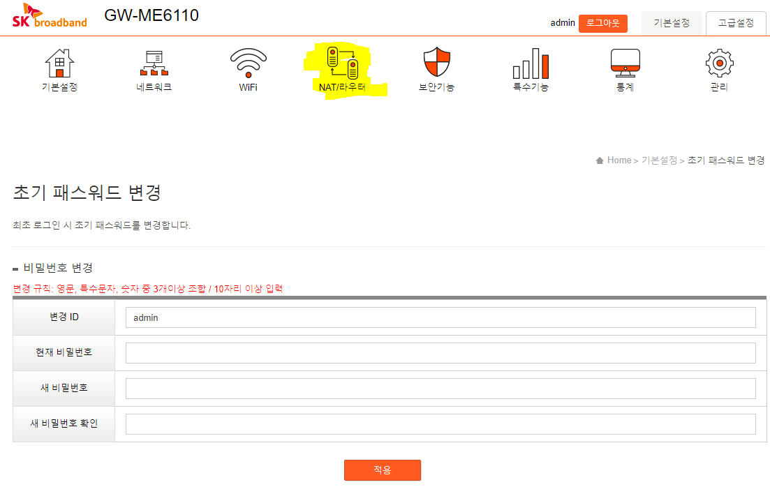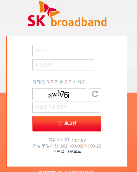 1. SK broadband admin 접속