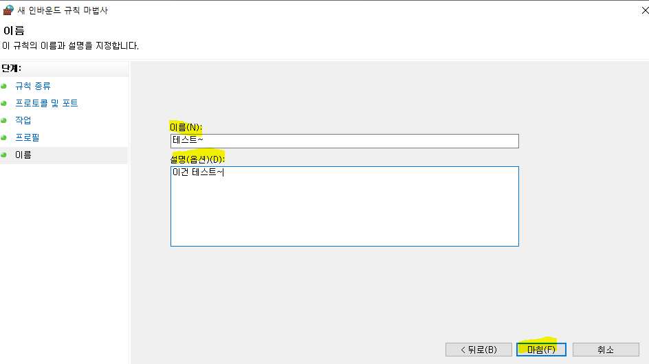 이름과 설명을 적고 마침을 클릭한다.