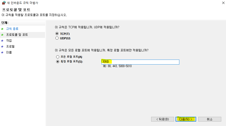 3. 방화벽 포트 접속 허용 설정