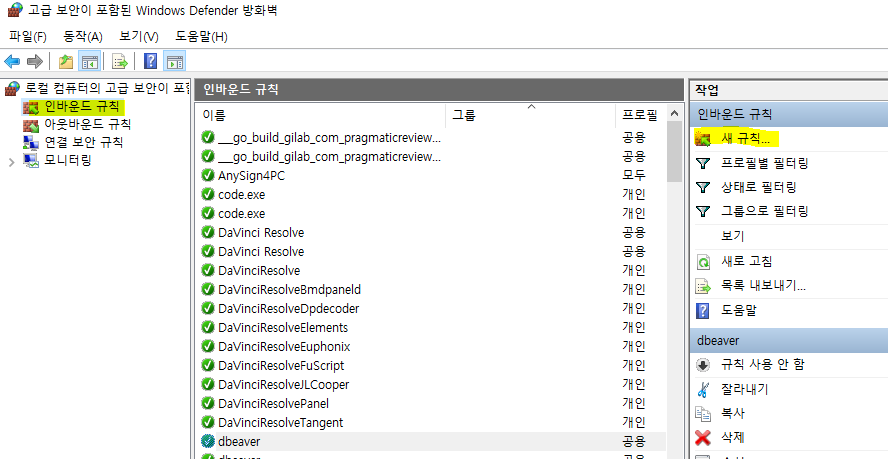 인바운드 규칙 => 새 규칙... 클릭