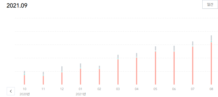 두 블로그의 방문자 차이를 얘기하자면 둘 다 일년정도 운영을 했지만 네이버 블로그는 130개 정도의 포스팅이 올라가 있고 티스토리는 140여 개의 글이 올라와 있다. 초반에 글은 네이버가 올릴게 더 많아서 많은 글이 올라갔다. (백수였기 때문) 지금은 거의 비슷해졌다. 티스토리를 갑자기 열심히 올린 게 아니다. 티스토리는 비슷한 속도로 올리고 있는 반면에 네이버는 소홀해진 것이다.