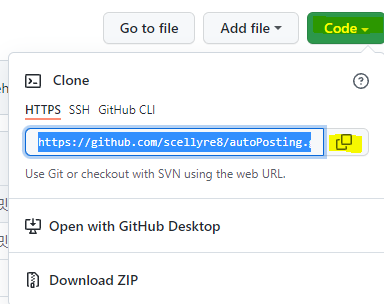 위와같이 레파지토리 URL을 복사하고 VS Code로 돌아와 붙여넣고 Enter