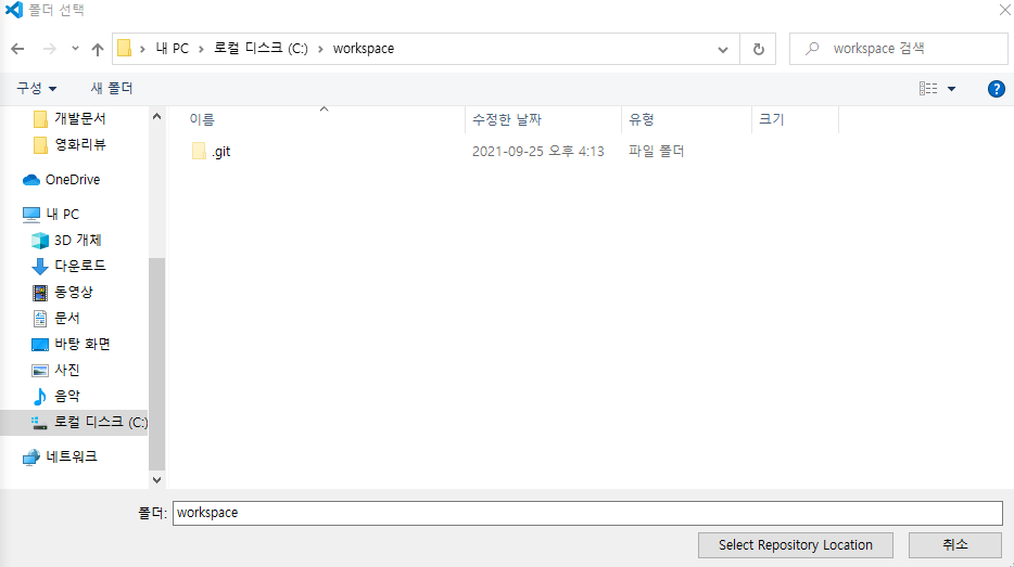저장할 로컬 경로를 선택하고 Select Repository Location 클릭