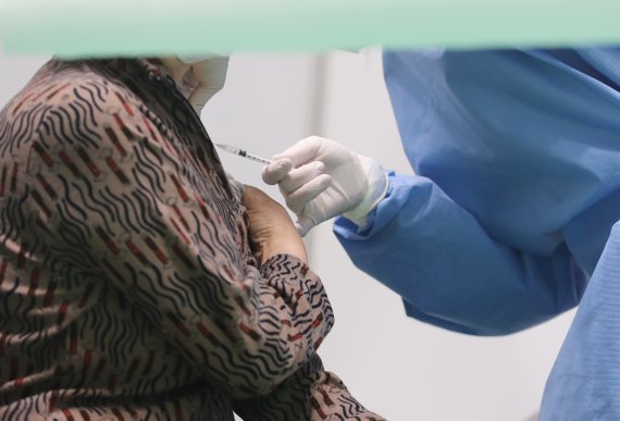 제주시 지역 예방접종센터인 한라체육관에서 한 시민이 백신을 접종받고 있다(사진은 기사 내용과 무관함)© News1 오현지 기자 /사진=뉴스1