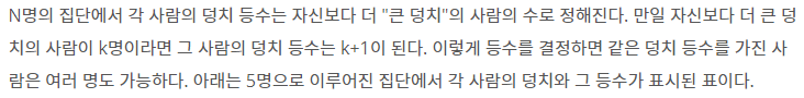 덩치 순위를 출력하면 된다.
