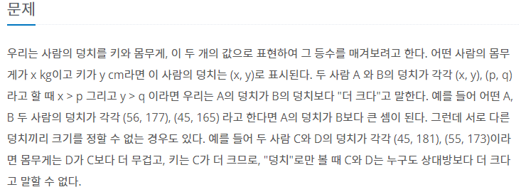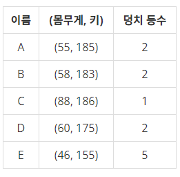 비교를 할 때 몸무게 키 둘 다 큰 값이 있는 경우 덩치가 크다고 한다.