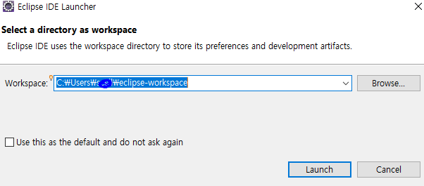 workspace 경로를 원하는 곳에 지정하고 Launch를 클릭한다.