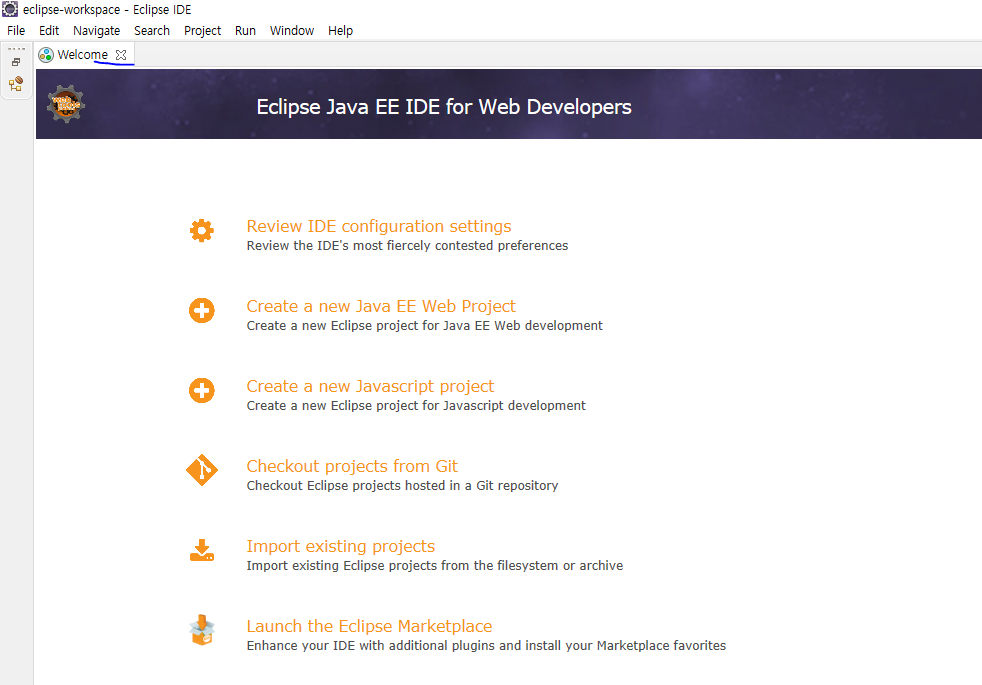 실행 되었다. welcome은 필요없으니 닫고..