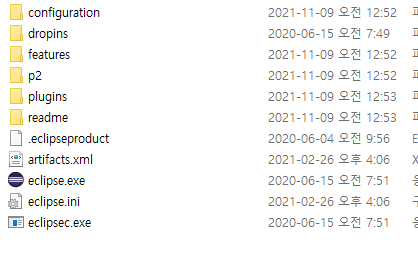 eclipse 폴더에 들어가보면 이렇게 파일들이 있다.