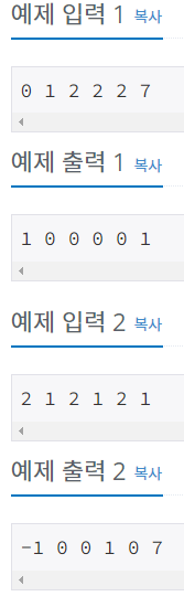 8행 : 입력값과 비교했을 때 몇개가 부족한지 많은지 확인하기 위한 정수 배열