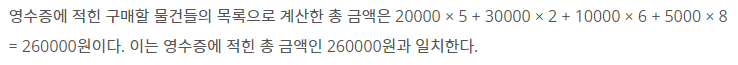 int comp = 0; // 총 금액이 맞는지 비교