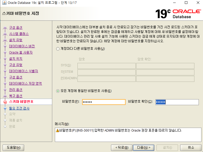 비밀번호는 잊어버릴까봐 단순하게 지정하고 동일하게 설정했다.