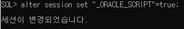 쿼리를 입력하면 C##을 붙이지 않고도 오류가 발생하지 않고 정상적으로 계정이 생성된다.