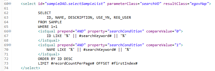 --- Check the sampleDAO.selectSampleList-InlineParameterMap.