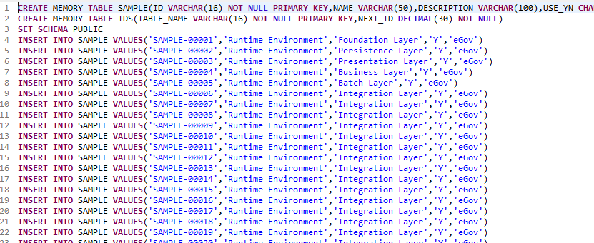 이제 테스트용 테이블과 데이터만 있으면 된다. 기존의 전자정부 예제를 그대로 따라가면서 테스트를 해보자.
