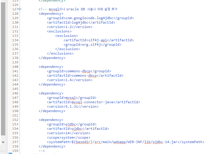 먼저 ojdbc는 저 systemPath 해당 경로에 저 ojdbc-14.jar 파일이 있어야 한다. 가지고 있는 ojdbc jar 파일을 WEB-INF/lib 밑에 직접 넣어주면 된다. 내가 가진 ojdbc 파일은 8버전이므로 아래처럼 수정했다.