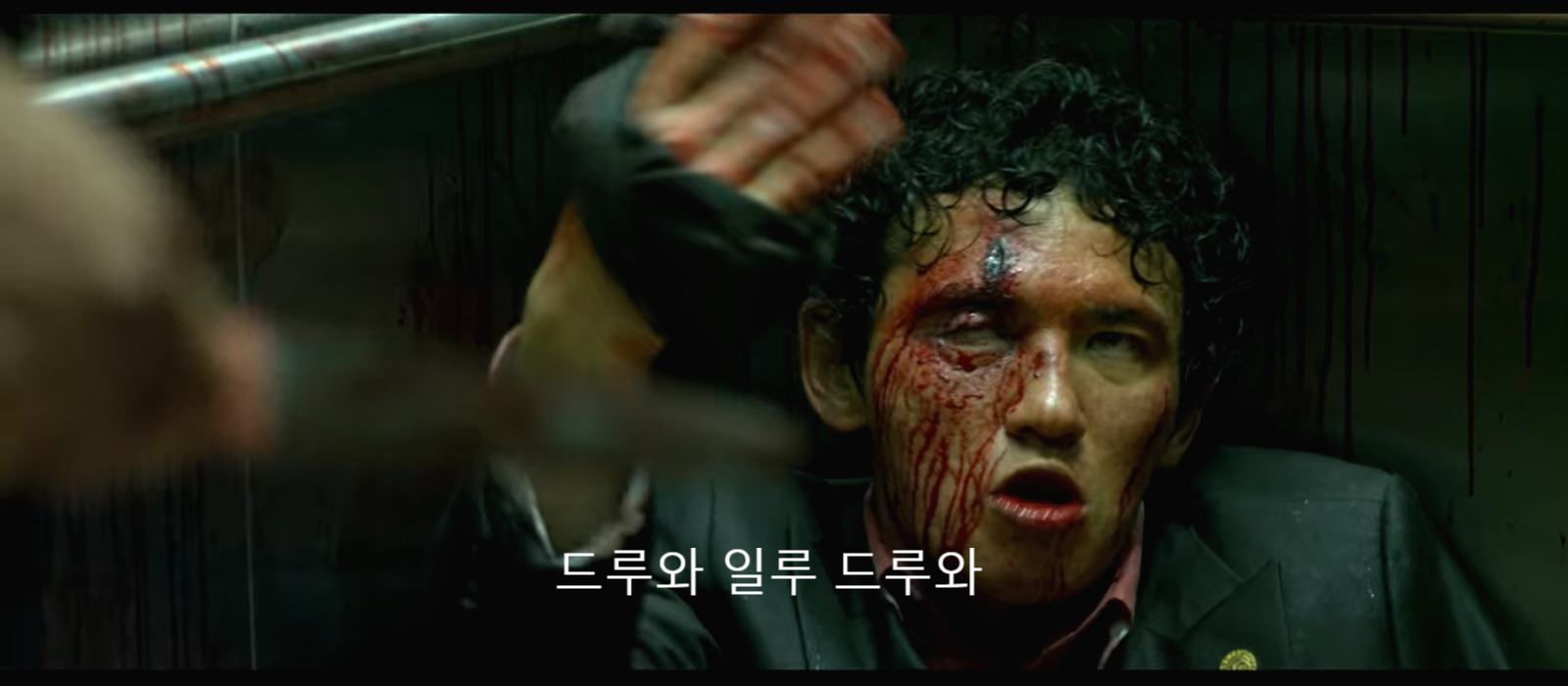 여기서 또 신세계의 명장면 엘레베이터 전투씬이 나오고 정청이를 후두려 다굴 깐다.