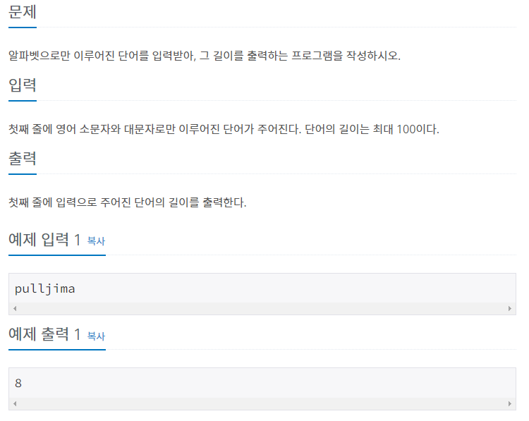 알파벳으로만 입력한 문자열 길이를 출력하면 된다.