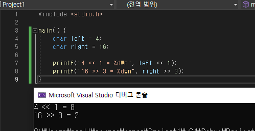 예를 들어 4 << 1 은 4를 비트로 표현하고 왼쪽으로 1만큼 이동시키는 의미이고 값은 8이 된다.