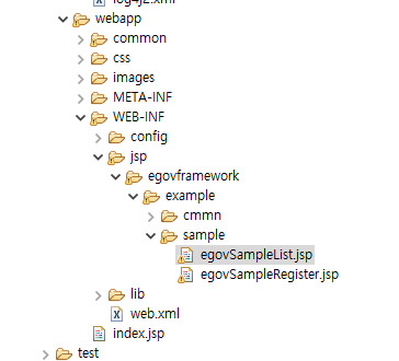 webapp 밑에 WEB-INF>jsp>egovframework>sample>egovSampleList.jsp가 있다.
