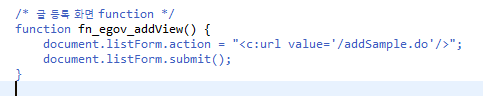 아무튼 중요한 건 저 등록 버튼을 클릭하면 fn_egov_addView() 함수가 실행된다.