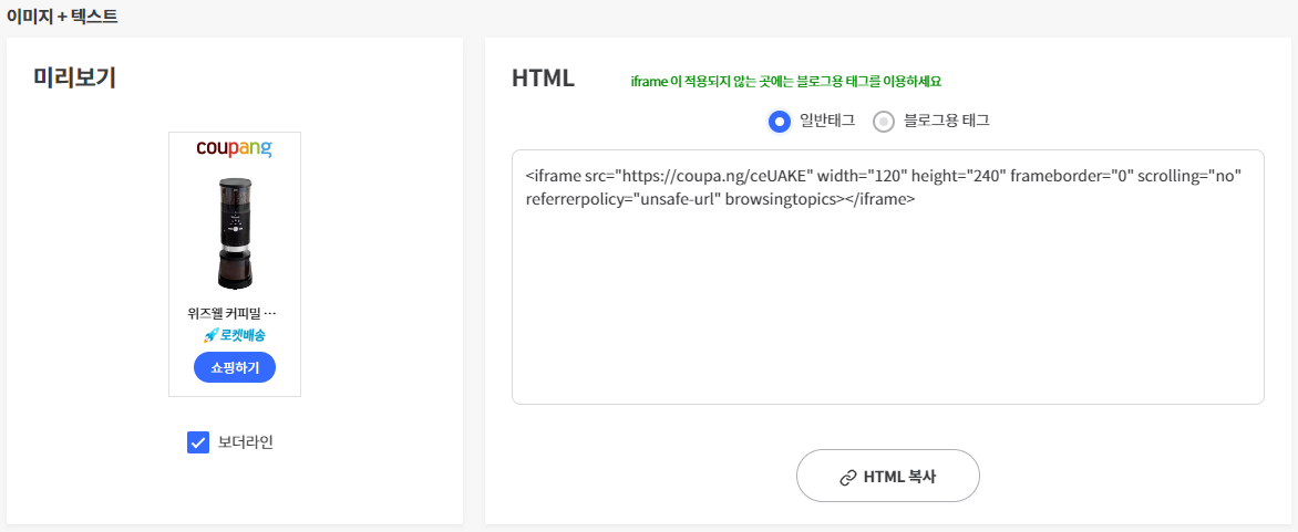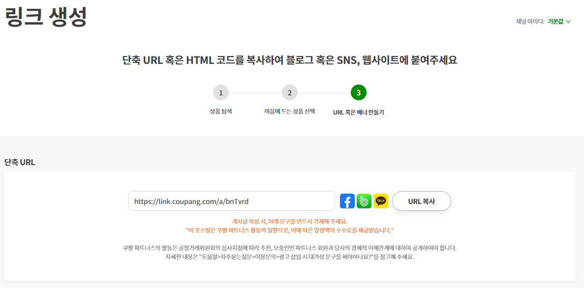 이제 스크린 샷 첨부와 쿠팡 광고를 올리기 위해 상품링크를 생성해야 한다.