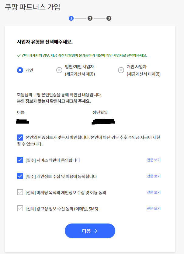 기존 쿠팡 아이디로 로그인을 한다. 뭐 당연한거지만 없으면 쿠팡 계정부터 생성 필요
