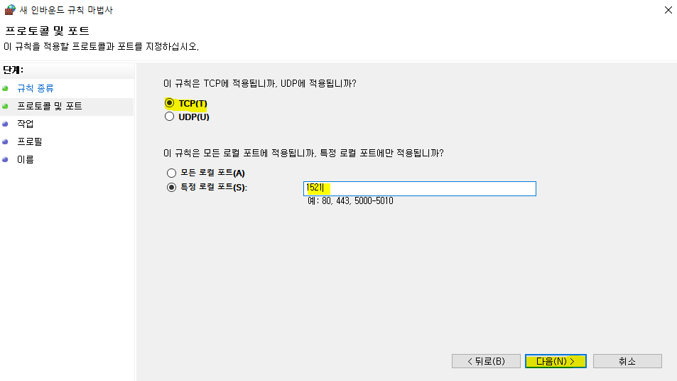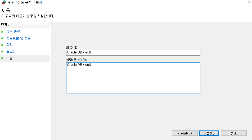 - 규칙이름을 입력한다. 알아볼 수 있게 정하면 된다.