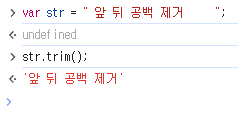 var str = " 앞 뒤 공백 제거 ";