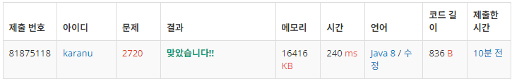| [백준] 2745번 JAVA 진법 변환 - 일반 수학 1 (0) | 2024.07.31 |