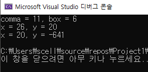 왼쪽부터 box의 값이 바뀌어 갔고 comma는 마지막 수식의 값이 들어갔다.