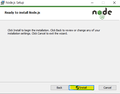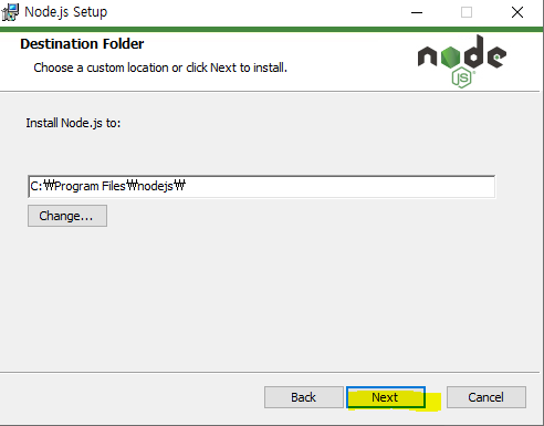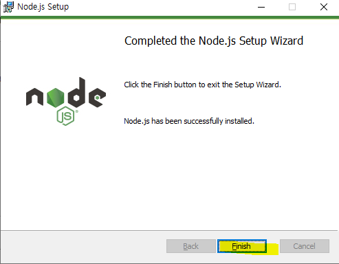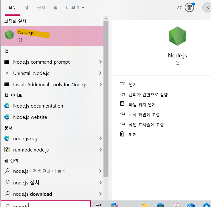 설치가 끝나면 시작프로그램에 Node.js가 추가된 걸 확인할 수 있다.
