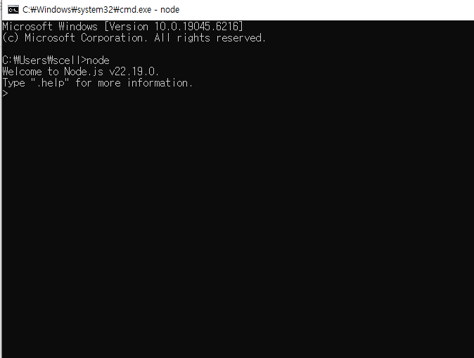 첫줄에 Welcome to Node.js 에 이어서 버전이 표기되어 있다.
