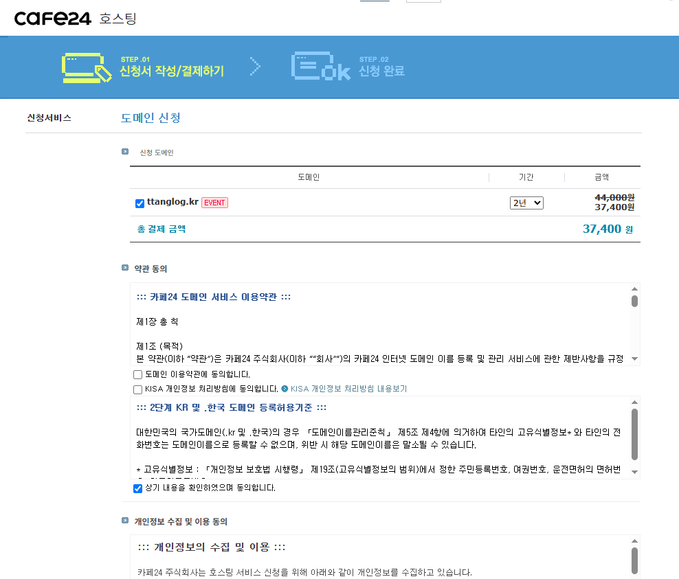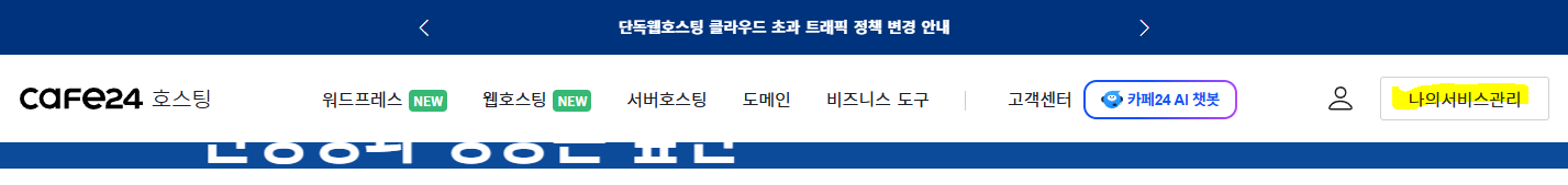 카페24에서 도메인 구매, 서버 호스팅을 할 예정이므로 먼저 카페24에 접속한다.