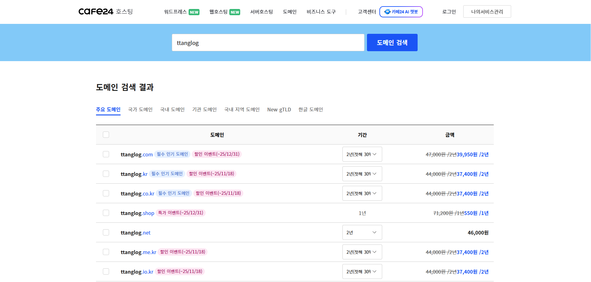 주소로 사용되므로 신중하게 고민해보고 도메인 검색을 한다.