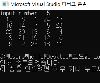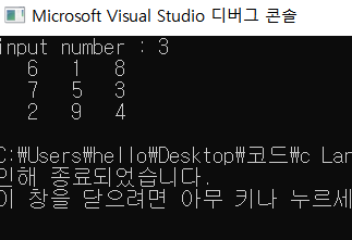 C언어 마방진(magic square) 프로그래밍