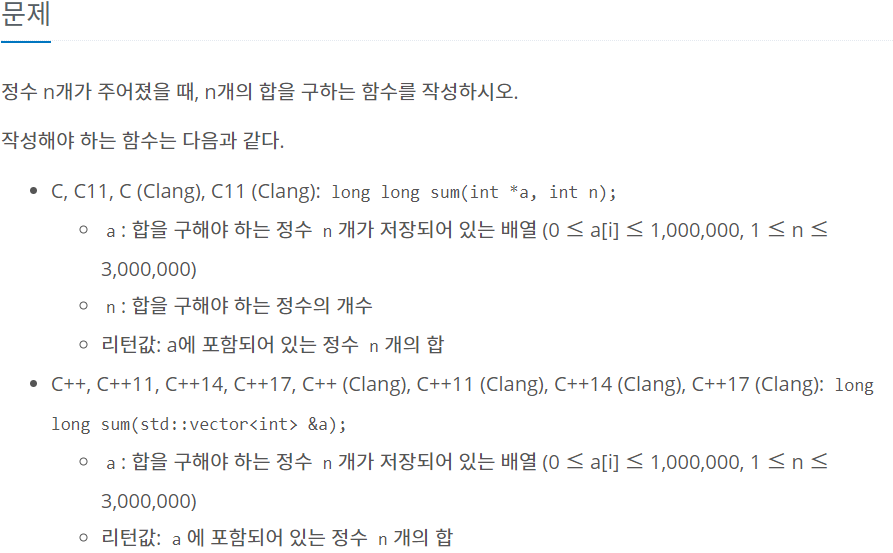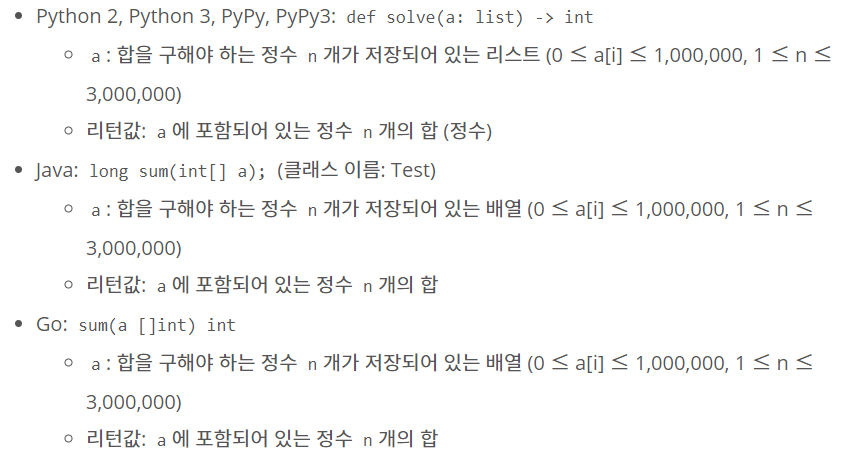 함수는 long타입의 sum(int[] a)로 작성하면 된다.