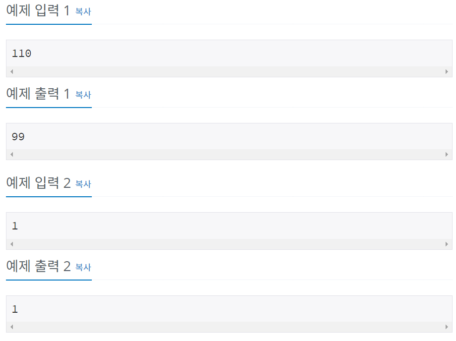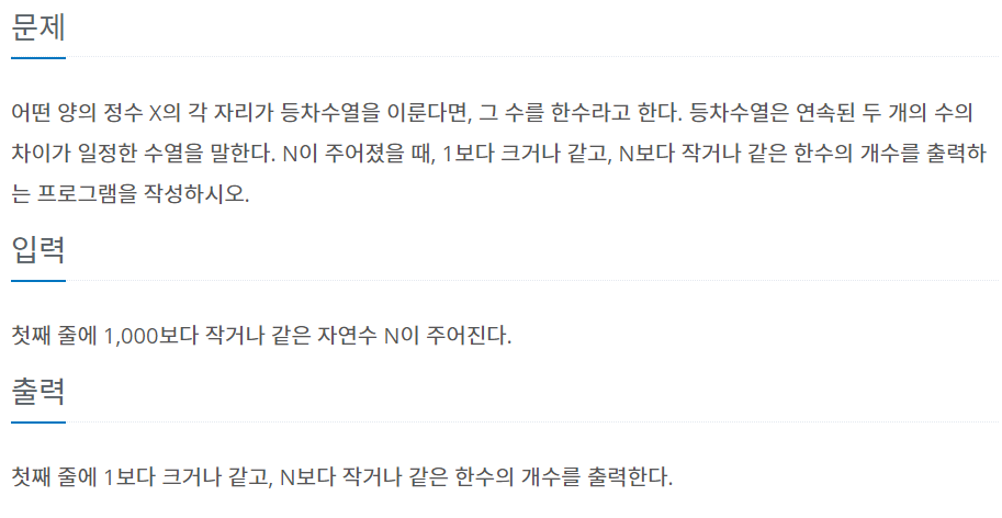 이런식으로 1~n까지 범위내에서 한수가 몇개인지 체크한다.