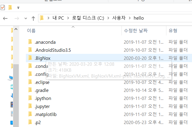 그리고 C:\Users\<사용자계정>\.AndroidStudio3.5 여기경로로 가보자.